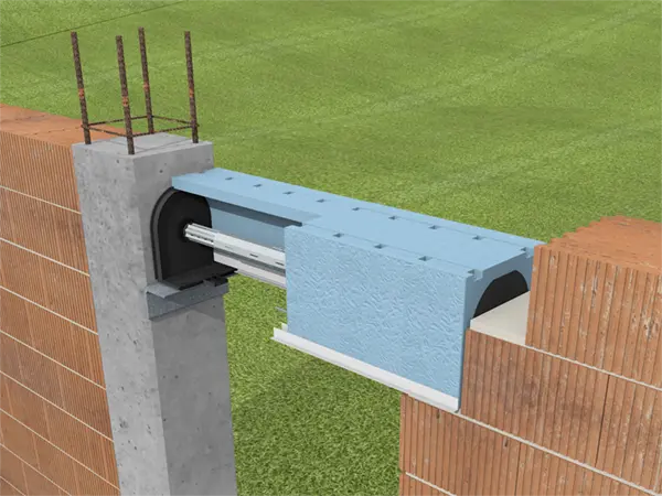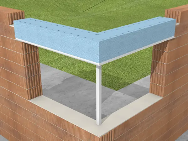 Su ligereza permite que sea manipulado por una sola persona. Se ancla al forjado mediante flejes de acero y soportes laterales, facilitando una colocación rápida y segura.