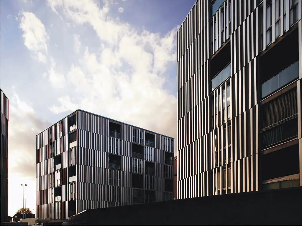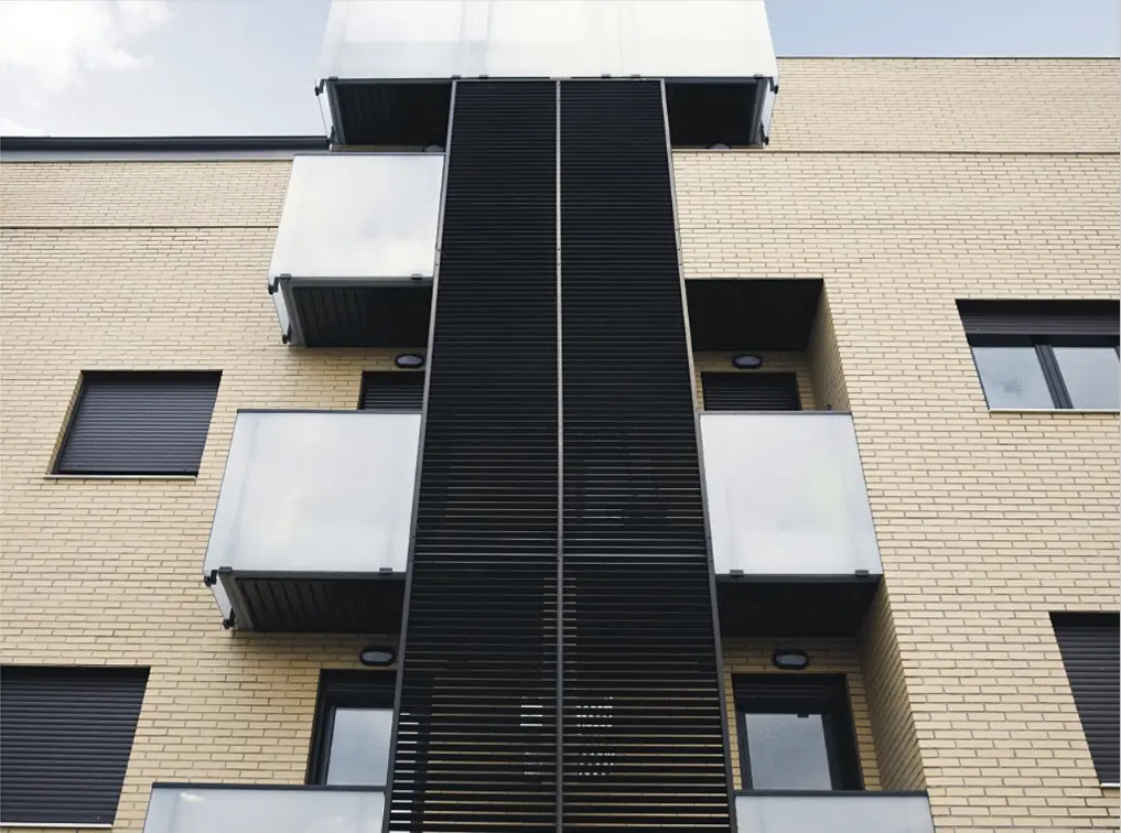 Diseñadas para integrarse con limpieza en volúmenes contemporáneos, las celosías aportan ritmo, textura y profundidad a la fachada. Están disponibles en múltiples acabados, configuraciones (vertical u horizontal) y sistemas de fijación, lo que permite al arquitecto jugar con la luz y la geometría desde una mirada expresiva y funcional.