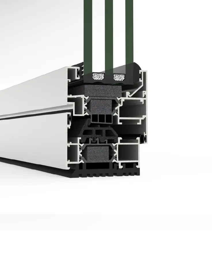 Este sistema abisagrado de 70 mm de profundidad ofrece un gran rendimiento térmico y acústico combinado con una fabricación muy sencilla, por eso se ha convertido en una de las series más demandas para ventanas, puertas y balconeras de aluminio.