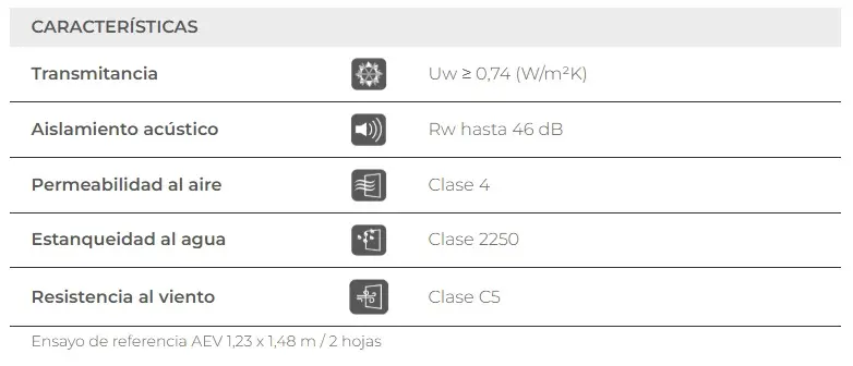 El sistema A84 Hoja Oculta cuenta con una profundidad de marco de 84 mm y una estructura interna de 6 cámaras, diseñada para ofrecer un elevado nivel de aislamiento térmico. Esta configuración permite mejorar el comportamiento energético del cerramiento y contribuir a un mayor confort interior durante todo el año.