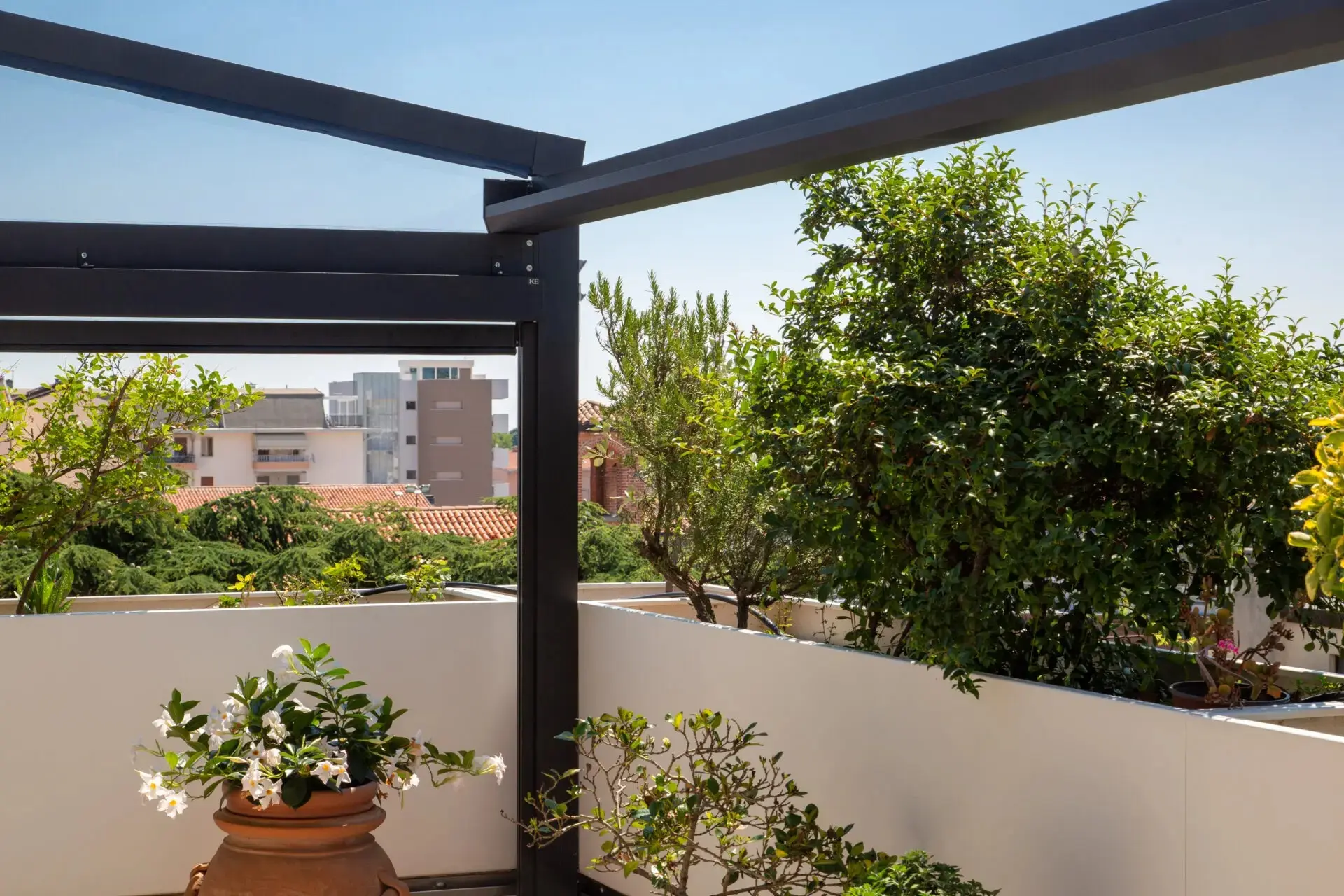 La A100 no es solo una pérgola, es un sistema ampliable. Gracias a su diseño modular, puedes instalar una unidad individual o combinar varias en serie para cubrir grandes superficies sin perder continuidad estética ni funcionalidad. Ideal para terrazas residenciales, patios de hostelería o espacios que evolucionan con el tiempo.