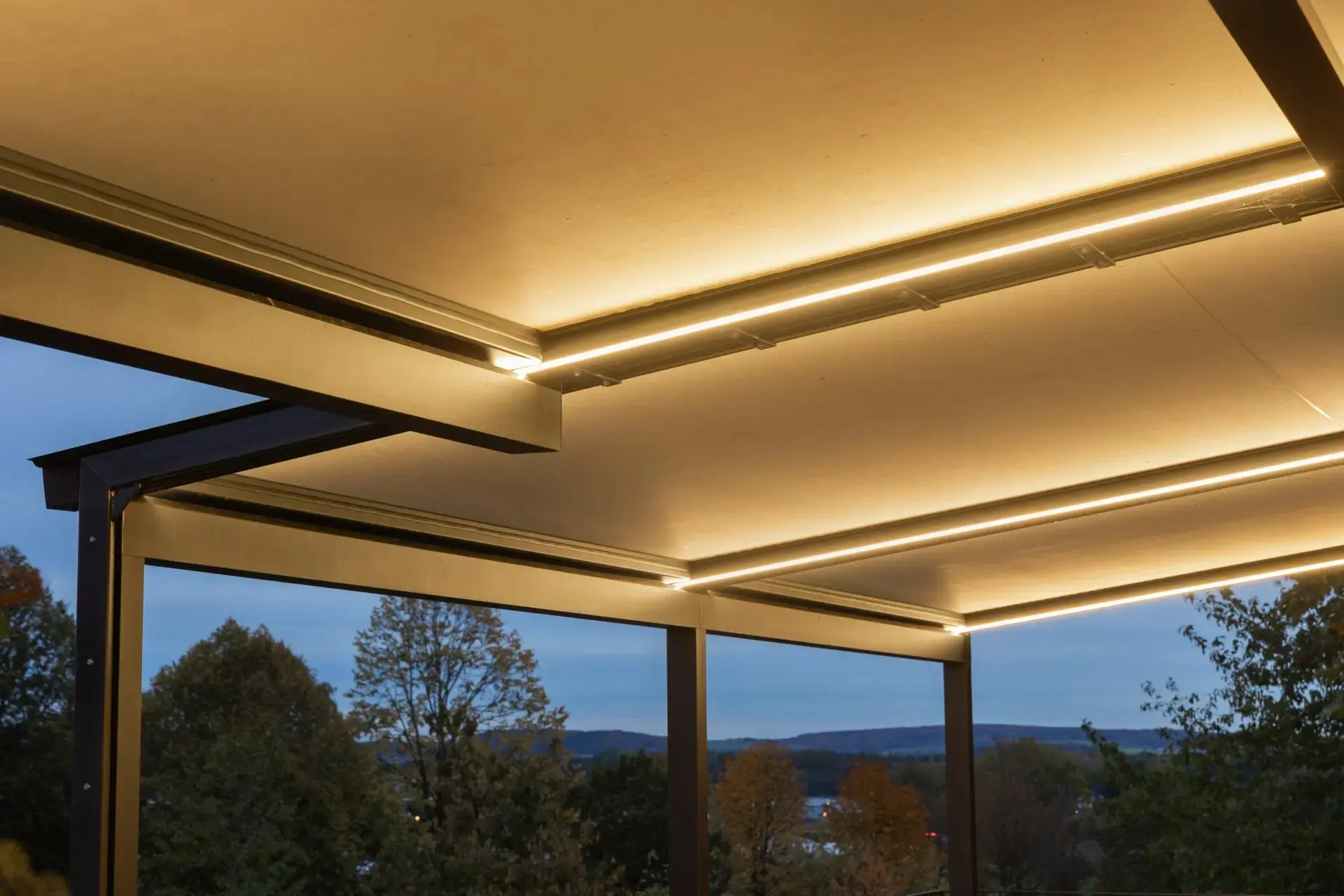 Cada modelo puede personalizarse hasta el mínimo detalle. Estructura lacada en múltiples colores, tejidos técnicos con diferentes grados de opacidad, integración de iluminación LED, sensores automáticos, cierres verticales y conexión con sistemas domóticos o smart home.