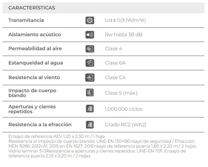 Su estructura robusta ofrece una sensación real de estabilidad y protección. Es una puerta pensada para resistir el uso diario y mantener su solidez con el paso del tiempo, aportando tranquilidad en cada cierre.