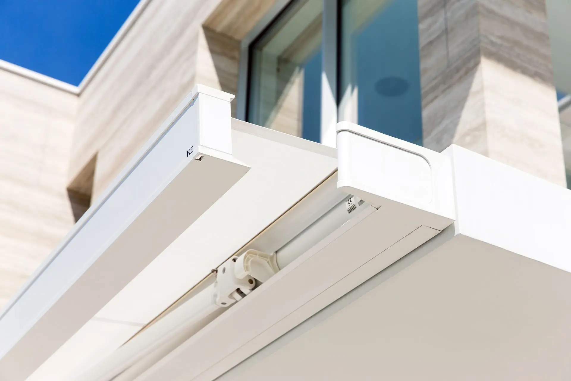Modelo FLAT - Con su desarrollo horizontal ultra-reducido y su estructura de cofre cerrado, se obtiene protección solar premium con un acabado arquitectónico impecable