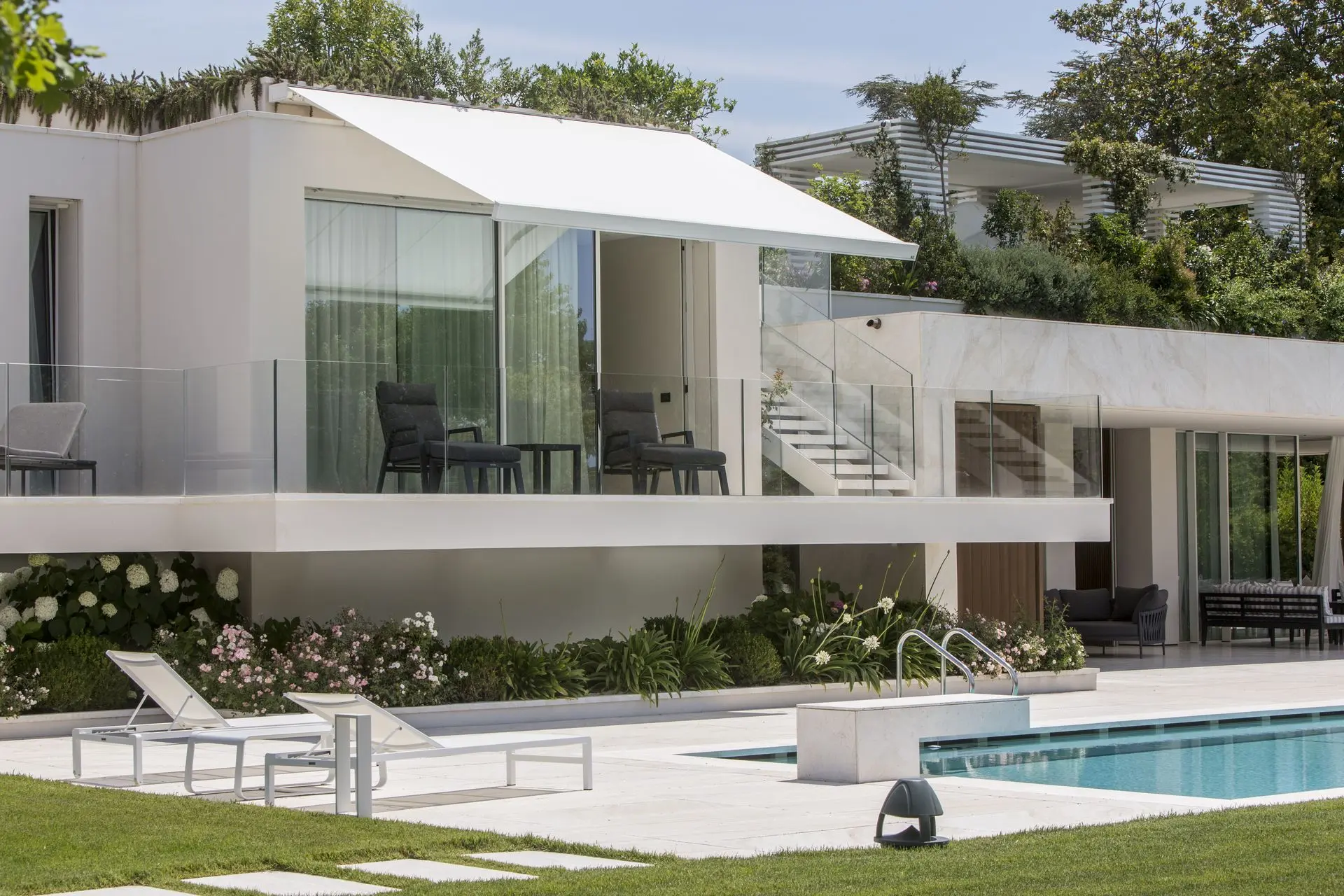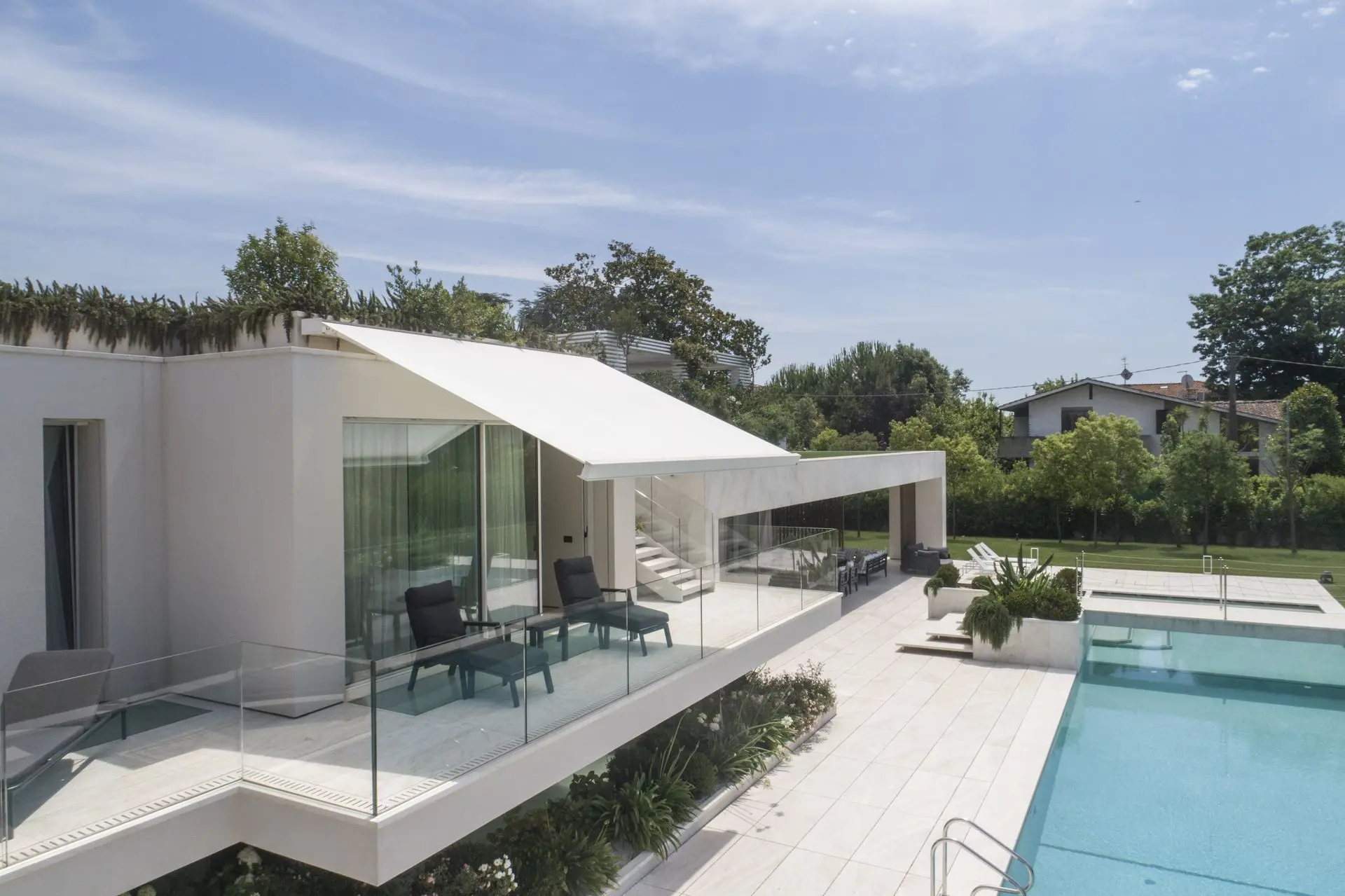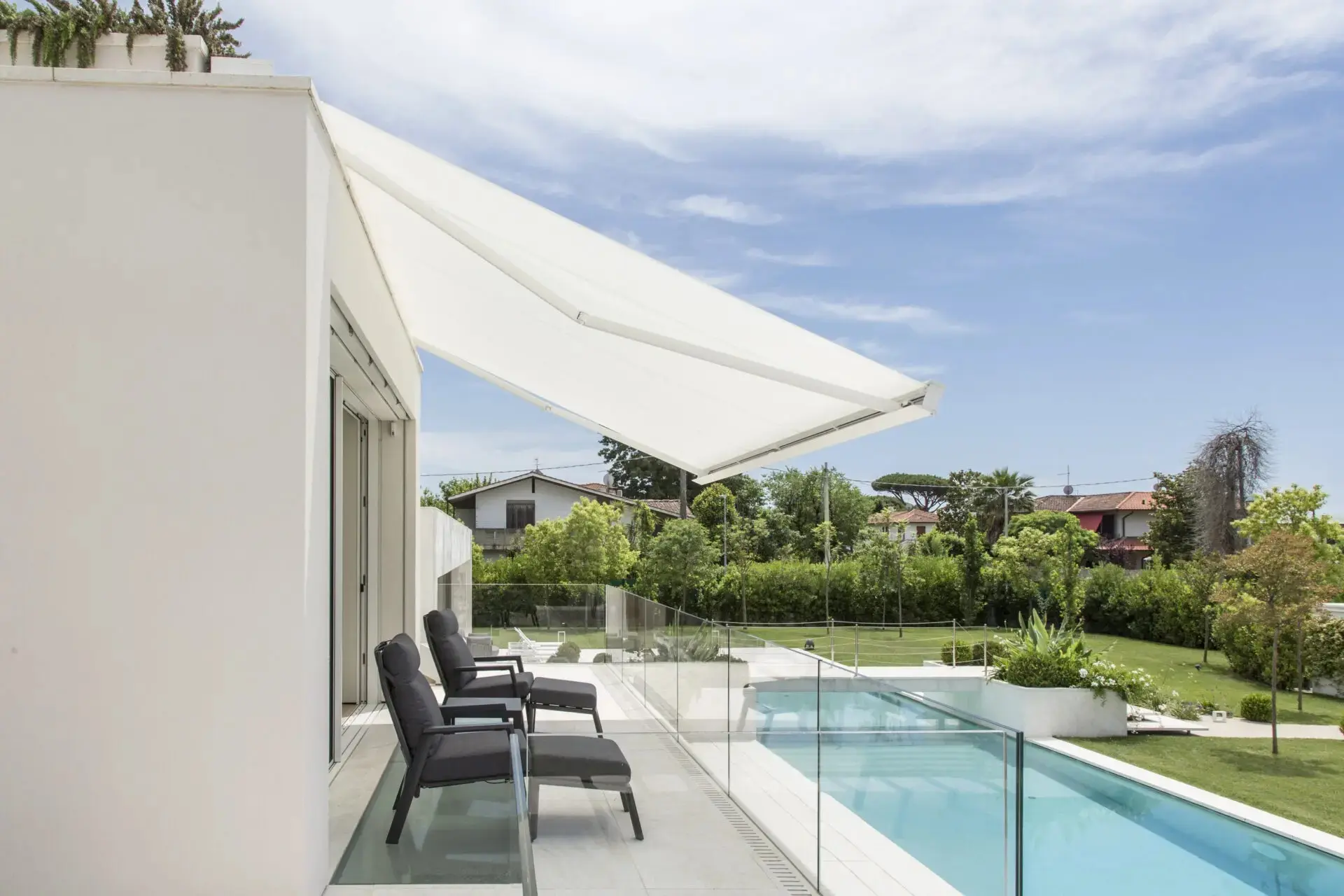 Su diseño de líneas claras y reducido volumen hace que el toldo QUBICA FLAT apenas se note cuando está retraído, dejando protagonismo a tu arquitectura y estilo exterior.