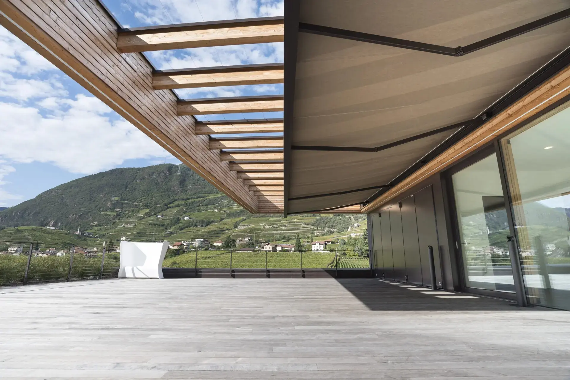 Gracias a su diseño de cofre hermético, QUBICA PLUMP protege el tejido del polvo, el sol y la lluvia ligera cuando está recogido. Ese nivel de protección prolonga la vida útil del toldo y mantiene su aspecto impecable.
